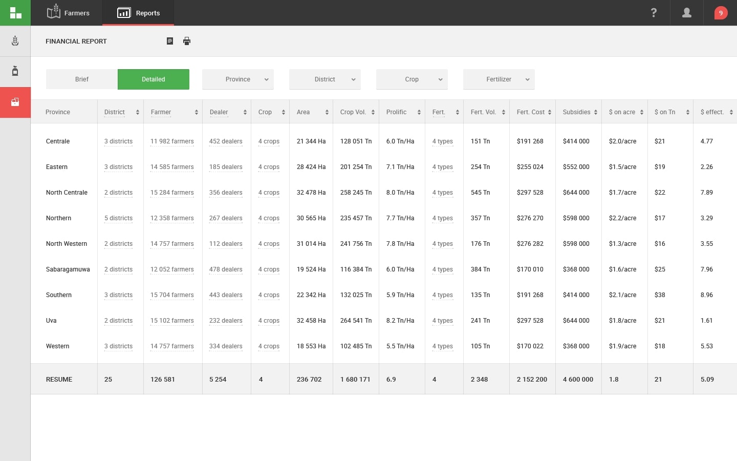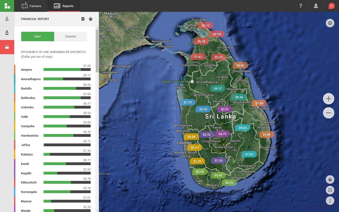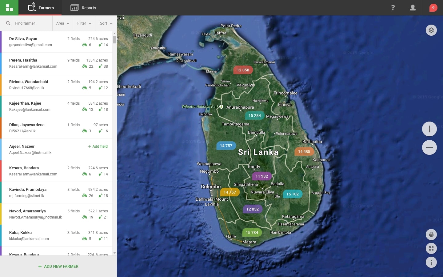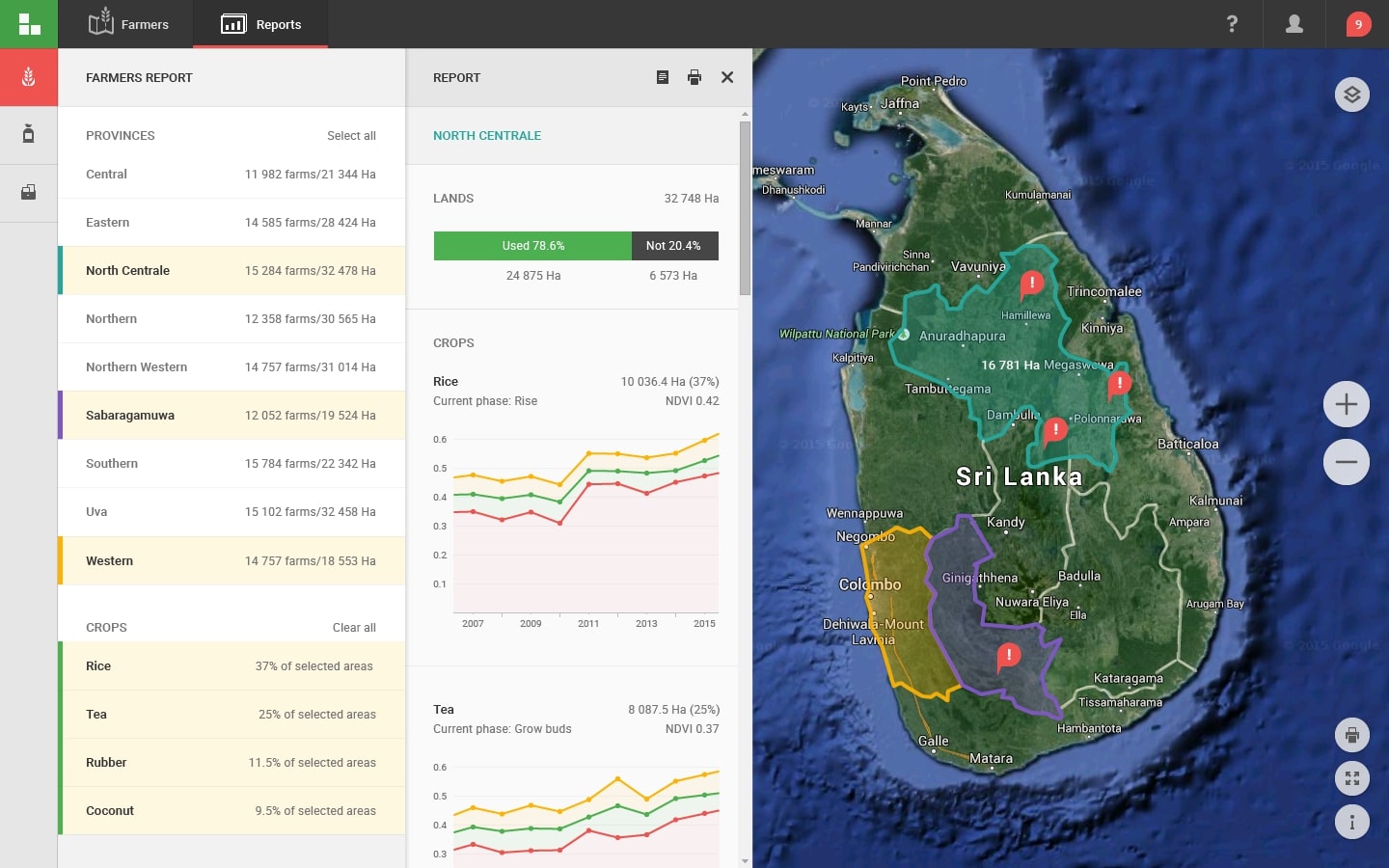 We created a special version of the interface for Sri Lanka Ministry of Agriculture who decided to use the service for controlling the efficiency of land usage and agriculture companies. This sector involves 32% of the country population.